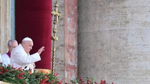 Paus Fransiskus saat menyampaikan pesan Natal di Alun-alun Santo Petrus di Vatikan (Foto: AFP/TIZIANA FABI)
