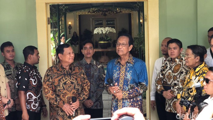 Pertemuan Prabowo dan Gibran dengan Sultan digelar di Baleworo, kompleks Kepatihan. Setibanya di pintu Baleworo, Prabowo-Gibran tampak disambut Ketua DPD Partai Golkar DIY Gandung Pardiman.