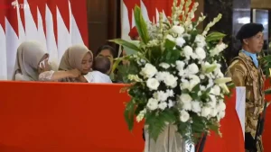 Ketiga peti yang dibalut bendera Merah Putih langsung dibawa ke ruang khusus untuk disemayamkan. Pada prosesi awal, hanya keluarga inti yang diperbolehkan mendekat guna memberikan penghormatan terakhir.